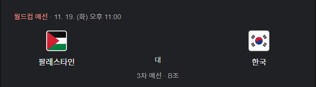 2024년 11월 19일 대한민국 vs 팔레스타인 축구 경기는 2026년 FIFA 월드컵 아시아 지역 2차 예선의 중요한 일정 중 하나로,